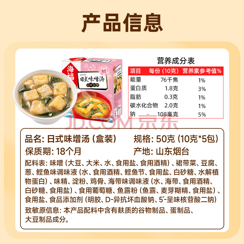 商品相册:海福盛方便食品速食汤即冲即食懒人早餐FD冻干汤日式味噌汤10g*5袋第
