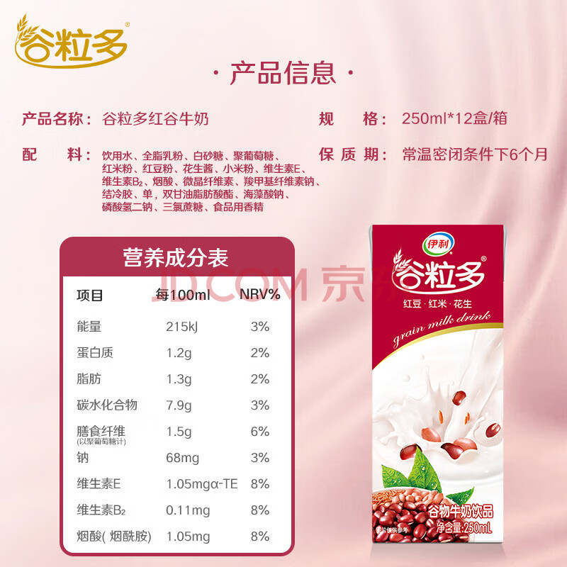 商品相册:伊利【新鲜日期】谷粒多 红谷牛奶饮品整箱 250ml*12盒 礼盒装第
