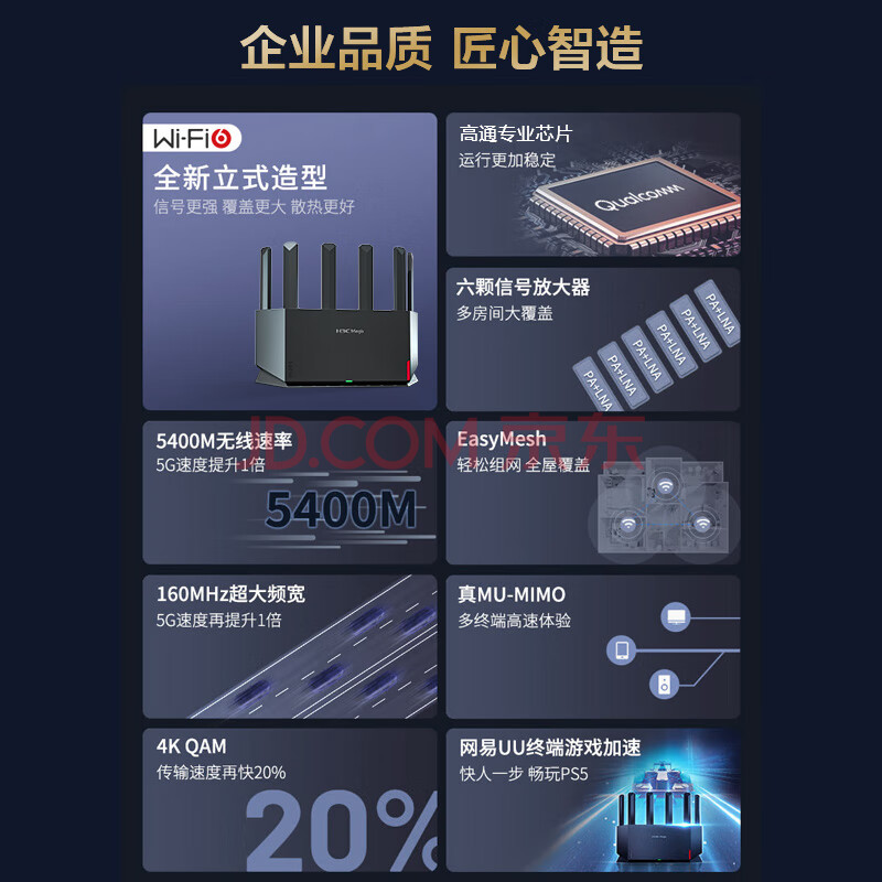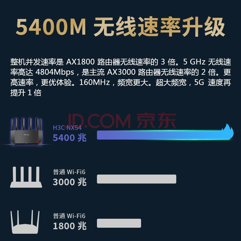 商品相册:华三(H3C) 新华三 NX54千兆wifi6路由器5400M无线路由5G双频 家用路由器穿墙大覆盖Mesh组网游戏电竞路由第