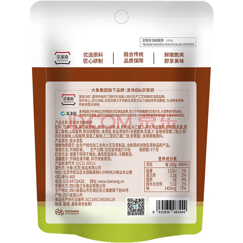 商品相册:清净园 宗家府泡椒嫩笋 40g*10袋装 韩式泡菜 常温酱菜竹笋榨菜 下饭菜第