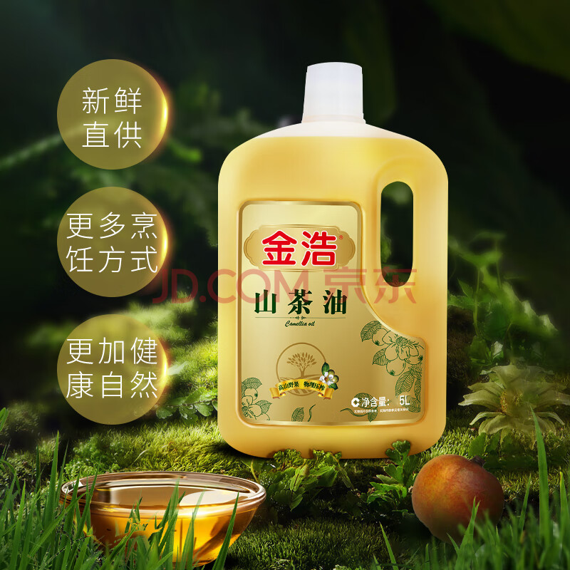 商品相册:金浩(JINHAO)【保真山茶油】高端零反一级食用油 物理压榨山茶油茶籽油5L第