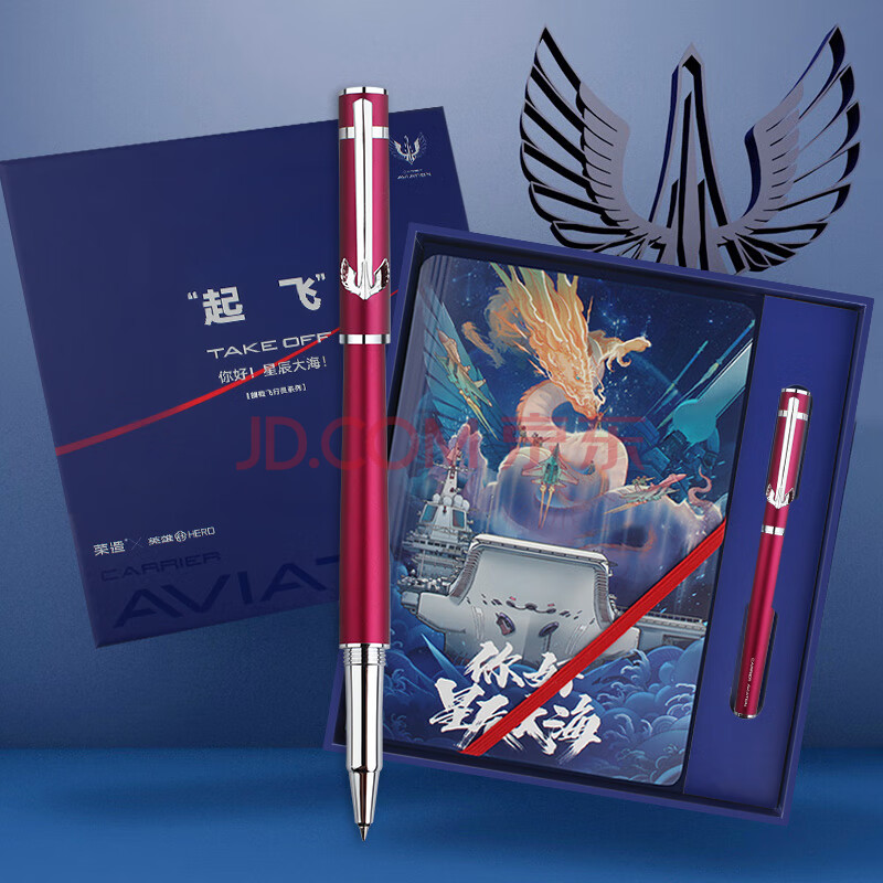 商品相册:英雄(HERO)宝珠笔 礼盒 H605D 舰载飞行员系列 笔记本宝珠笔礼盒 签字笔礼盒红色第