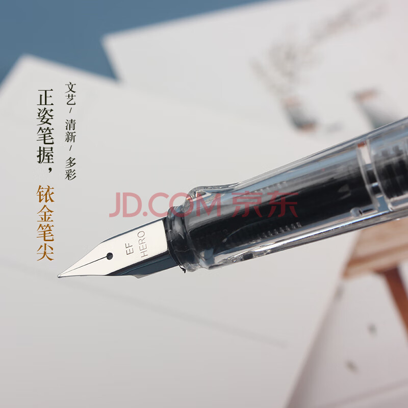 商品相册:英雄(HERO)钢笔359B正姿EF尖薄厚片工艺学生练字钢笔 (附加6支墨囊)铱金钢笔签字笔炫彩变色绿 EF尖第