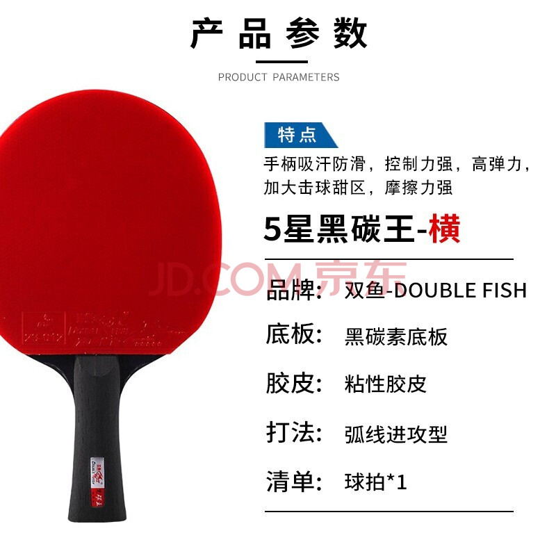 商品相册:双鱼(DOUBLE FISH)黑碳王乒乓球拍碳纤维专业级全能型乒乓球球拍 黑碳王五星横拍第