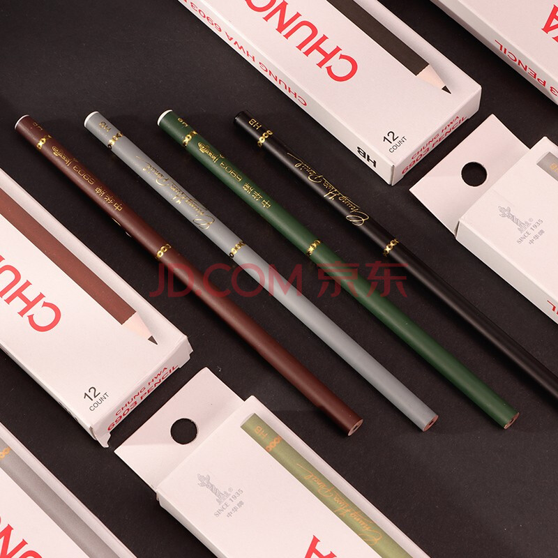 商品相册:【开学必备】中华书写学生铅笔HB圆杆磨砂办公铅笔 12支/盒 6903黑色第