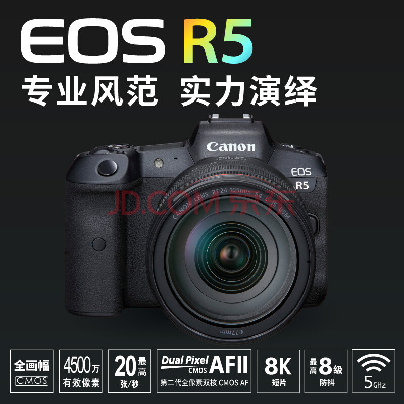 商品相册:佳能(Canon)EOS R5 8K微单相机 L级24-105标准镜头套装 旗舰型全画幅专业微单第1张/共4
