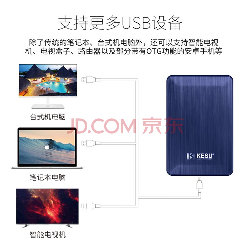 商品相册:科硕(KESU)移动硬盘加密 2TB USB3.0 K1 2.5英寸奔放蓝外接存储文件照片备份第