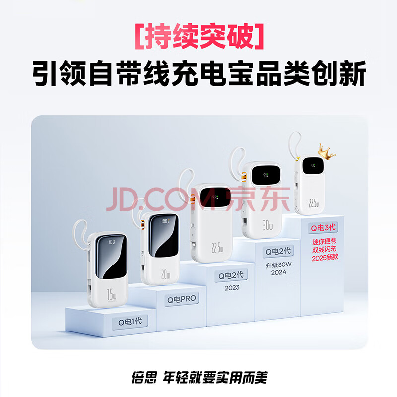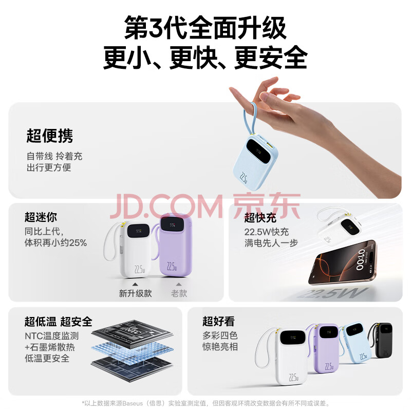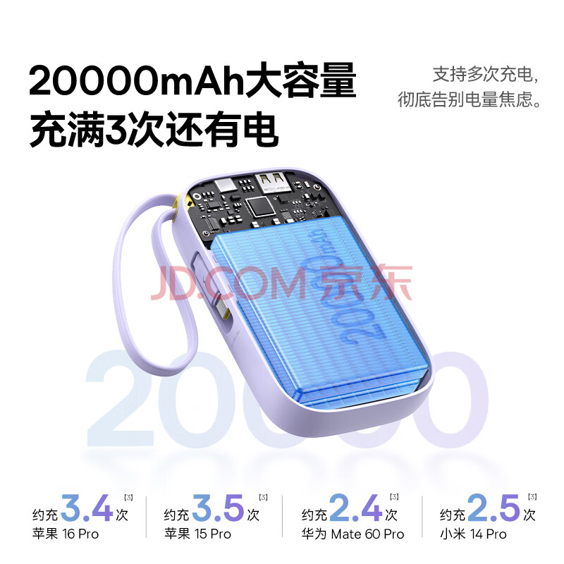 商品相册:倍思【国标3C认证】充电宝20000毫安22.5W自带IP线快充移动电源可上飞机适用于苹果华为小米手机第
