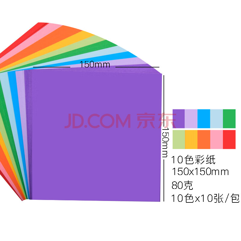 商品相册:凯萨(KAISA)100张彩色折纸 10色彩纸正方形卡纸儿童DIY手工剪纸美工纸15cm第