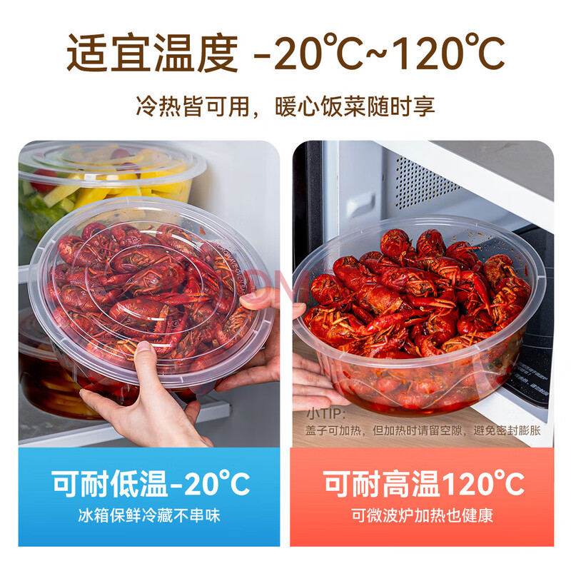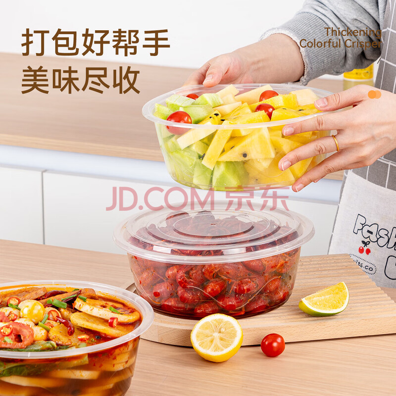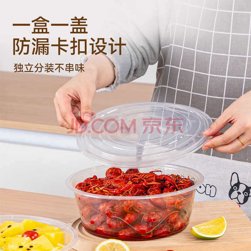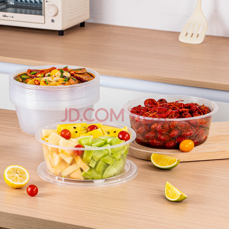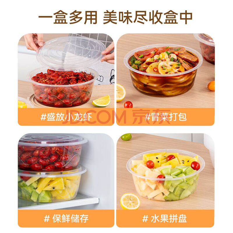 商品相册:特美居(temeiju)一次性饭盒圆形透明塑料快餐盒加厚带盖打包盒餐具30套装3000型第
