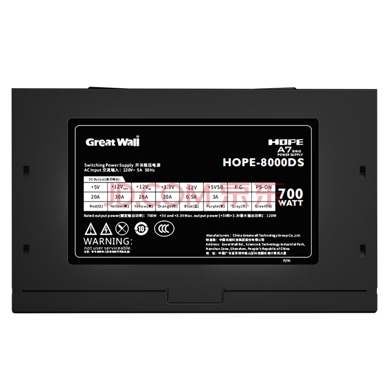 商品相册:长城(Great Wall)额定700W HOPE-8000DS电脑电源(双8PIN/75cm长线材/宽幅/温控风扇/4显卡接口/独立开关)第