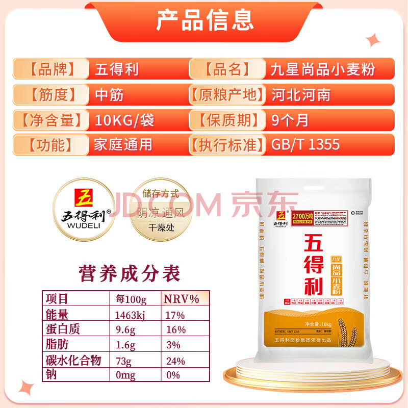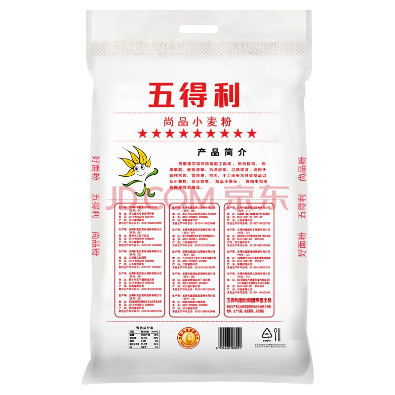 商品相册:五得利九星尚品小麦粉20斤 高端家庭通用粉筋道雪白第