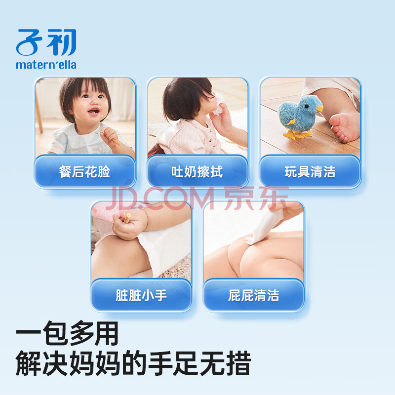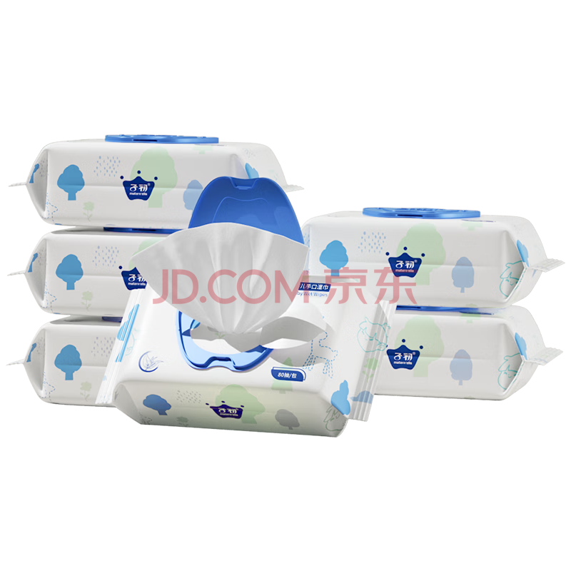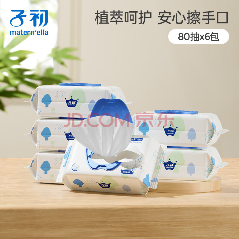 商品相册:子初婴儿湿巾 新生儿湿纸巾 宝宝手口柔湿巾80抽*6包第