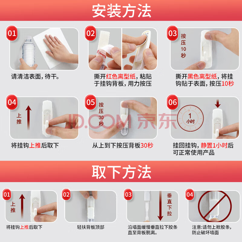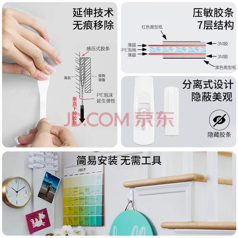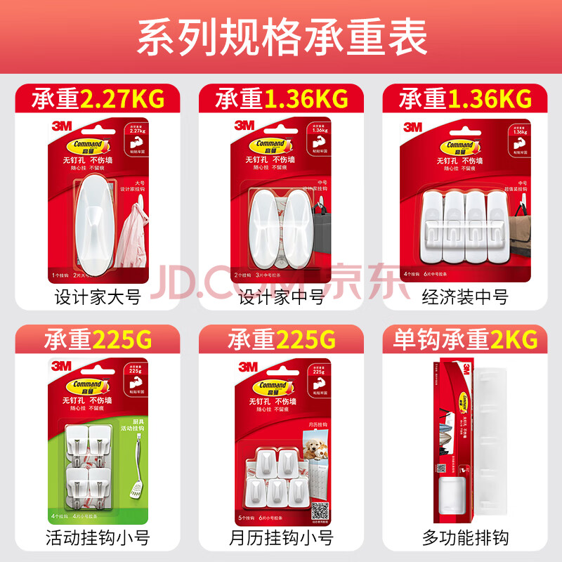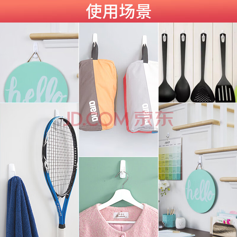 商品相册:3M挂钩 高曼免打孔门后挂衣钩 强力粘钩不留胶不伤墙 超值装中号4只第