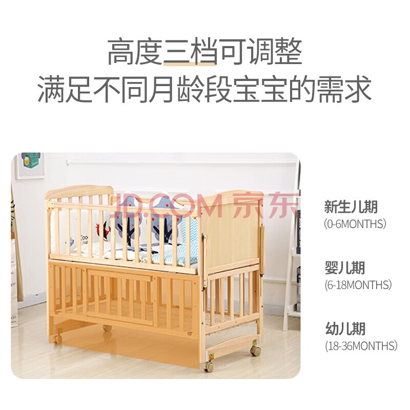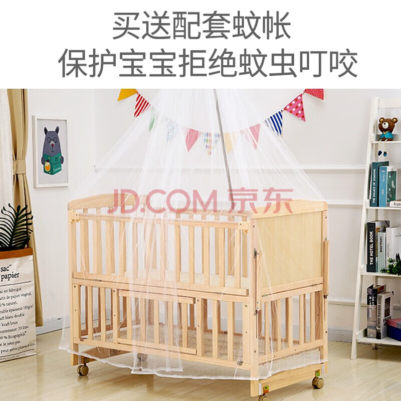 商品相册:智贝实木婴儿床无漆多功能拼接新生儿摇篮儿童床边床 ZB008+床垫床品第