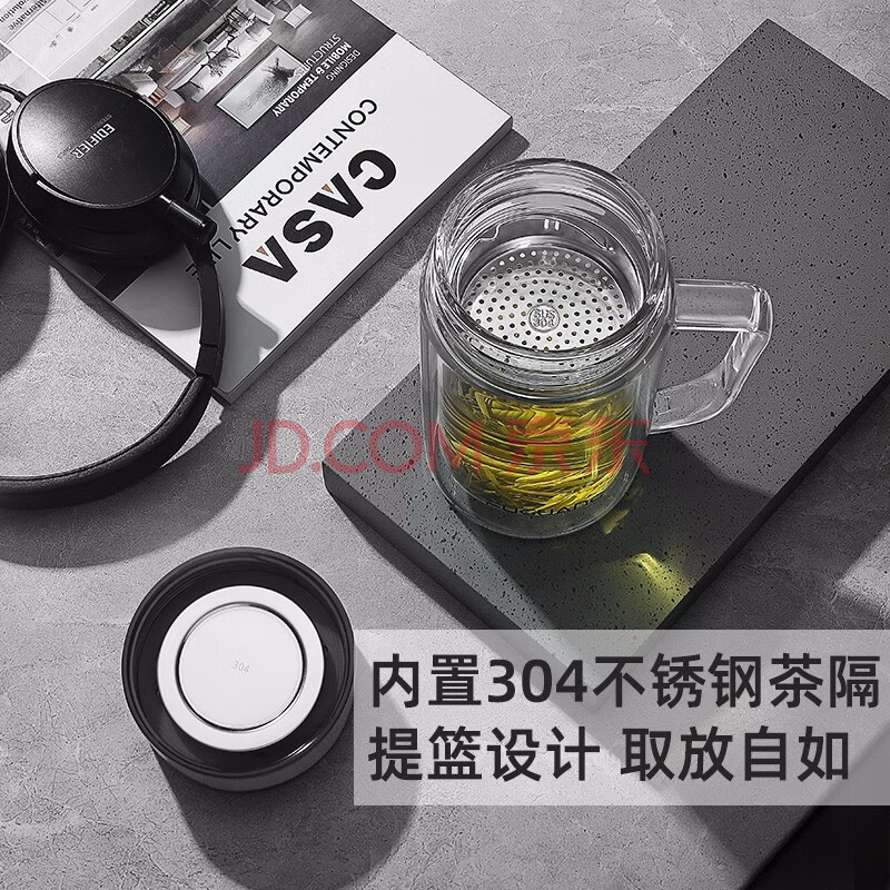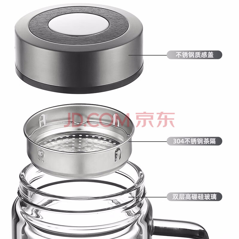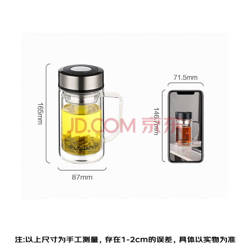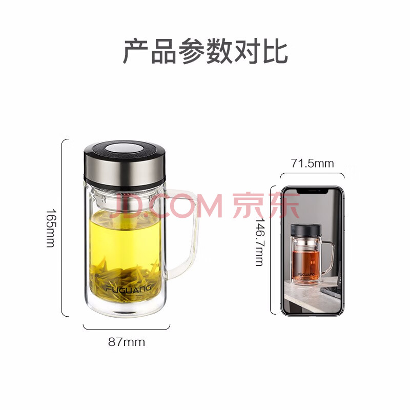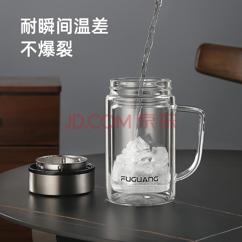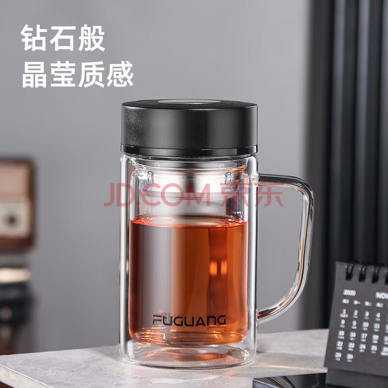 商品相册:富光高硼硅玻璃杯大容量带茶隔水杯便携带把办公泡茶杯子办公杯双层第