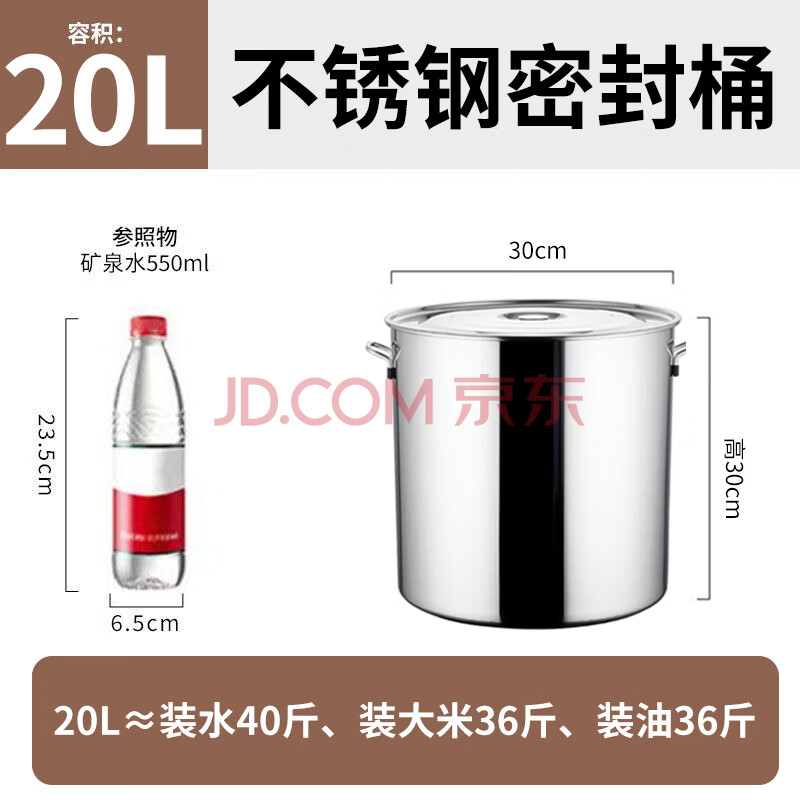 商品相册:全适不锈钢桶带盖加厚大汤锅米桶卤水桶30*30cm食堂酒店餐饮商用厨具第1张/共5