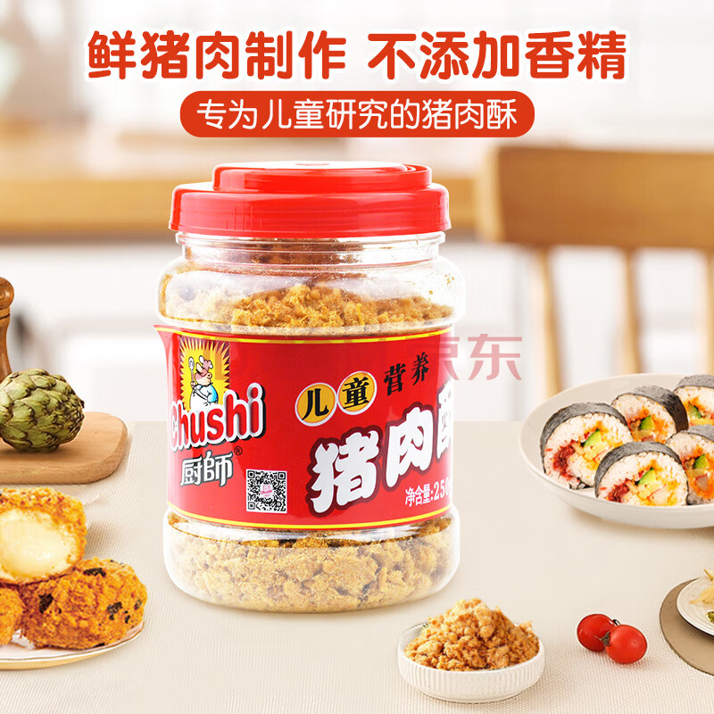 商品相册:厨師 儿童营养肉酥250g 高蛋白猪肉松宝宝拌饭解馋零食小吃烘焙食材第