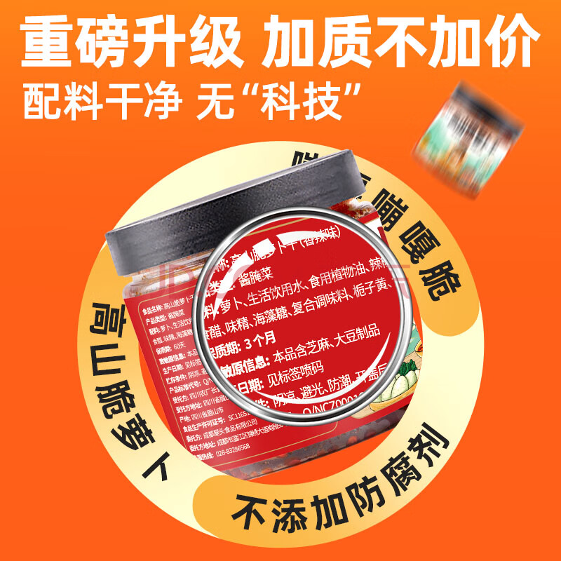 商品相册:屋头 高山脆香辣萝卜干320g咸菜川味农家萝卜丁条下饭菜酱腌菜榨菜第