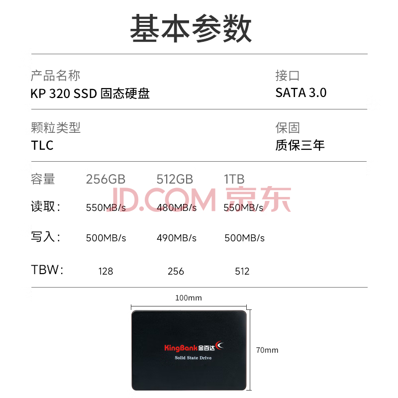 商品相册:金百达(KINGBANK) 512GB SSD固态硬盘 SATA3.0接口 KP320系列第