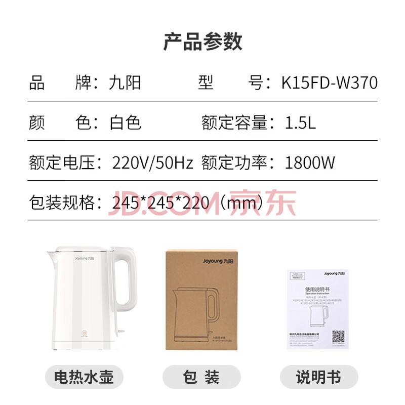 商品相册:九阳(Joyoung)家用电热水壶1.5L开水壶双层壶体开水煲第