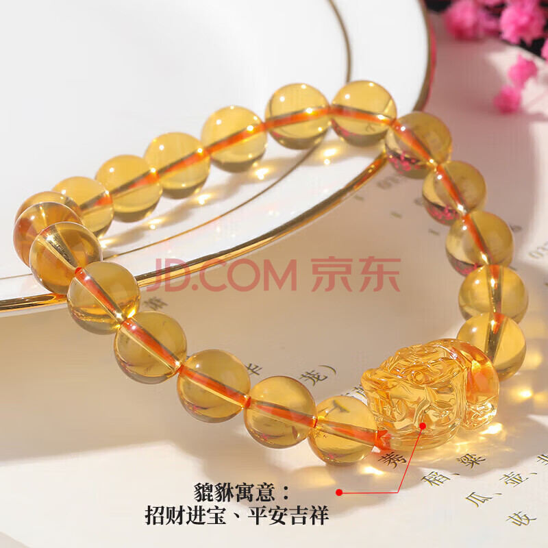 商品相册:石玥珠宝精品7-8mm天然黄水晶貔貅手链本命年转运珠手串男女士款 水晶玛瑙第