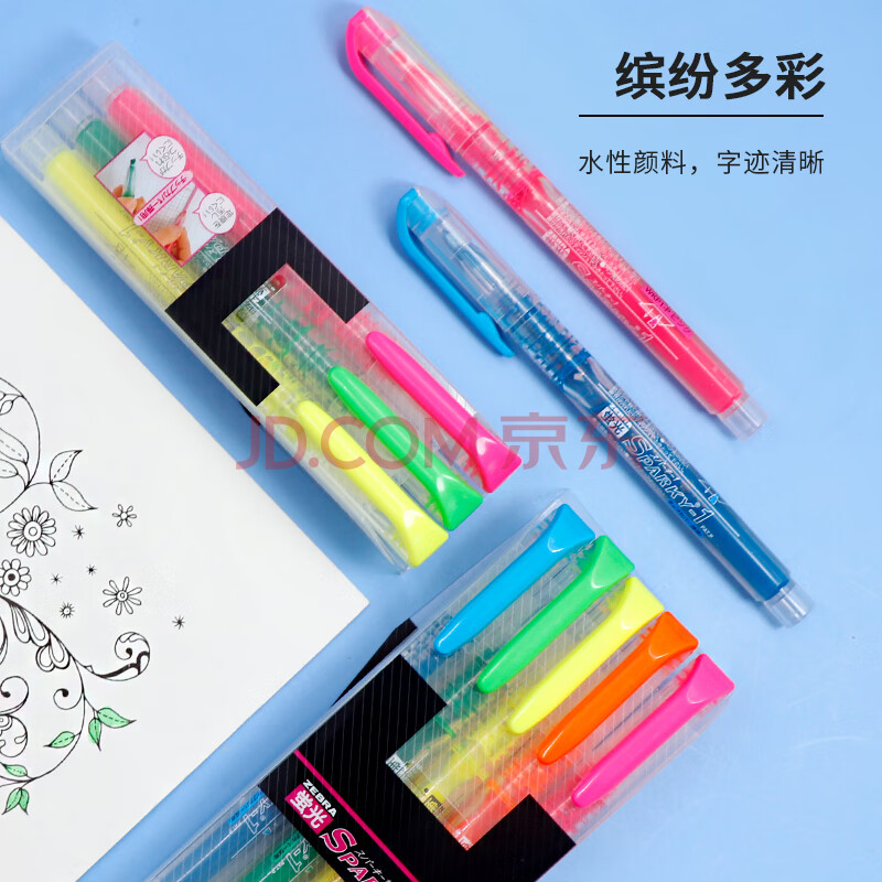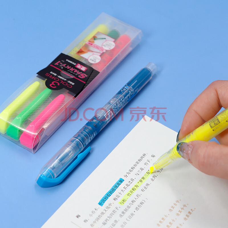商品相册:斑马牌 (ZEBRA)透芯直液荧光笔 SPARKY系列单色划线记号笔 彩色手账笔学生标重点记笔 WKP1 3色套装第