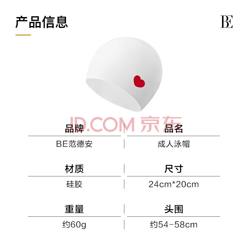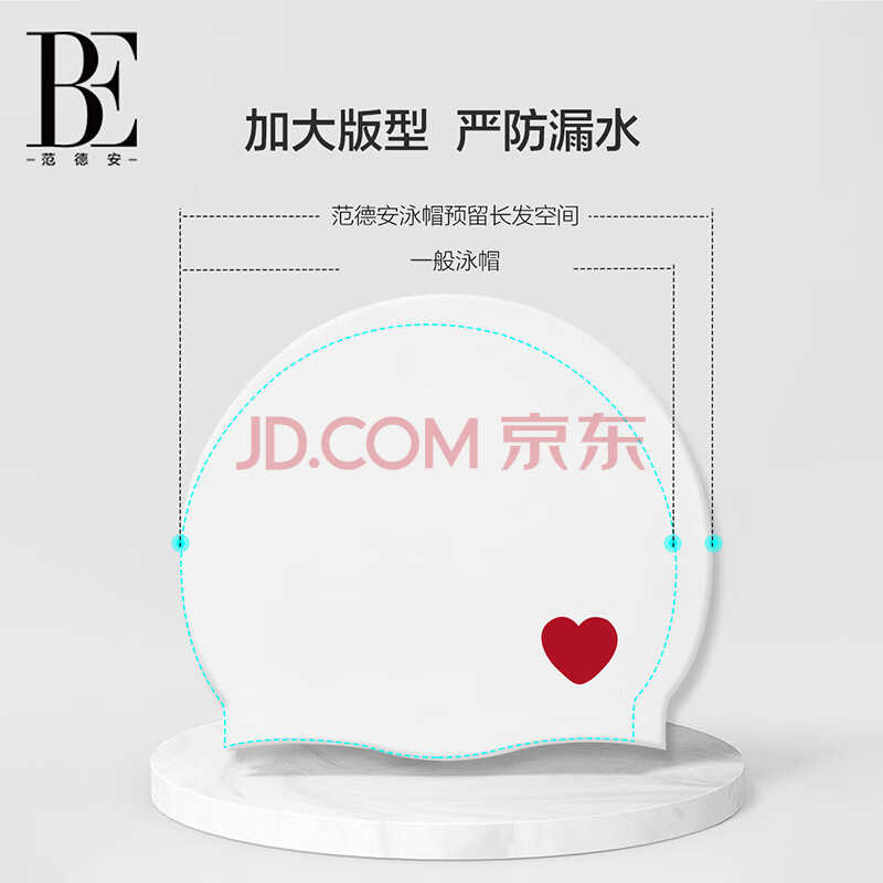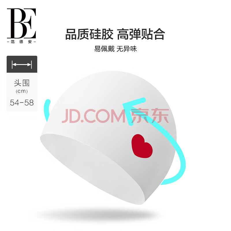 商品相册:范德安(BALNEAIRE)【刘亦菲同款】女士时尚小红心系列泳帽护耳防水硅胶不勒头 白红第