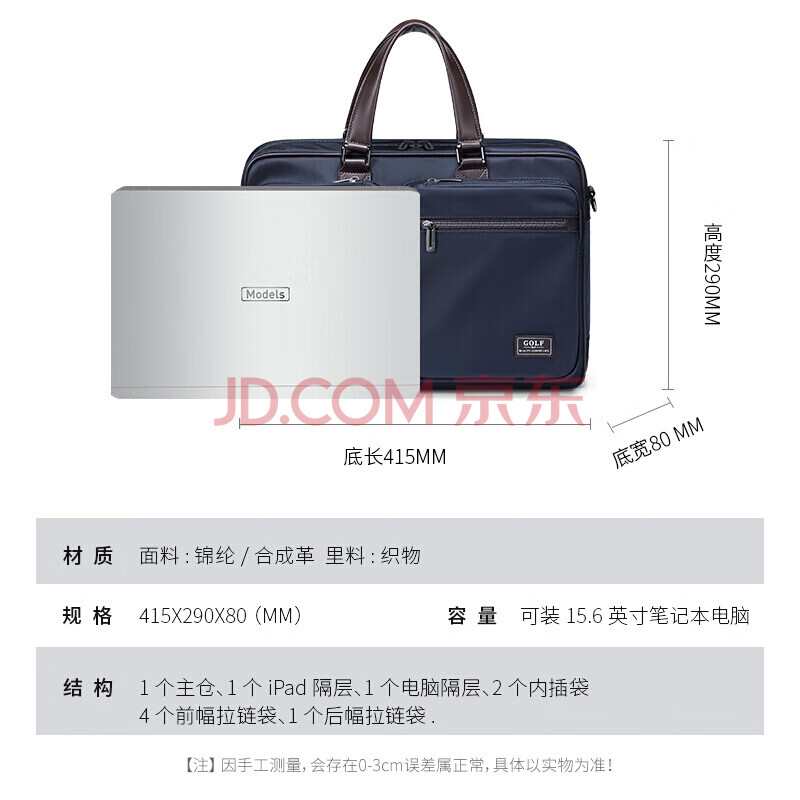 商品相册:高尔夫(GOLF)商务公文包男士多隔层手提包男15.6英寸笔记本电脑包送男友送父亲第