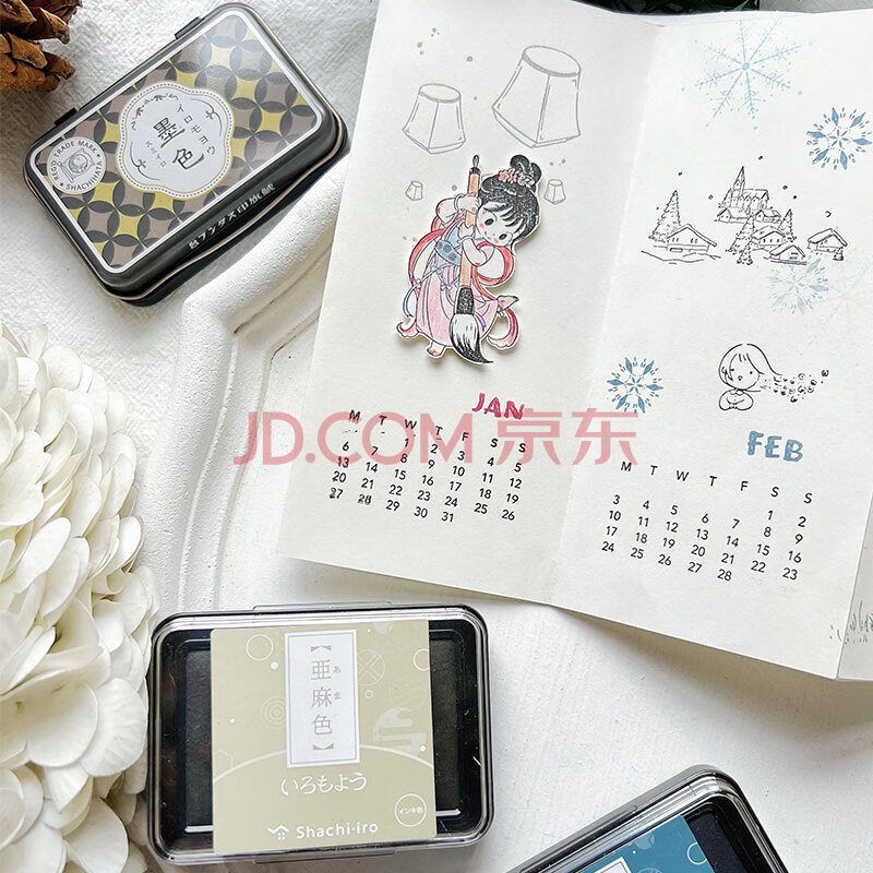 商品相册:旗牌(Shachihata)Artline 和风自然色防水彩色手指画橡皮章速干手帐油性可爱印台印泥 绀青色 HAC-1-DB第