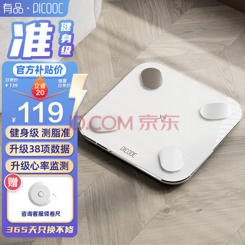 商品相册:PICOOC有品智能体脂秤电子秤体重秤心率监测家用减肥高精准测人体38项数据脂肪称BigPro生日礼物送男女友第1张/共7
