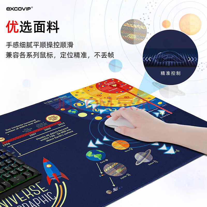 商品相册:宜适酷(EXCO)宇宙星球鼠标垫超大号笔记本电脑办公桌垫键盘垫子电竞游戏垫可水洗防滑9303第