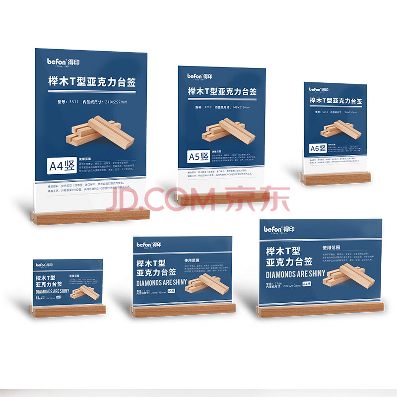 商品相册:得印精致榉木T型亚克力台签台卡7706桌牌架宣传单展示架收银台展示牌酒水餐牌桌卡A4横1/个第
