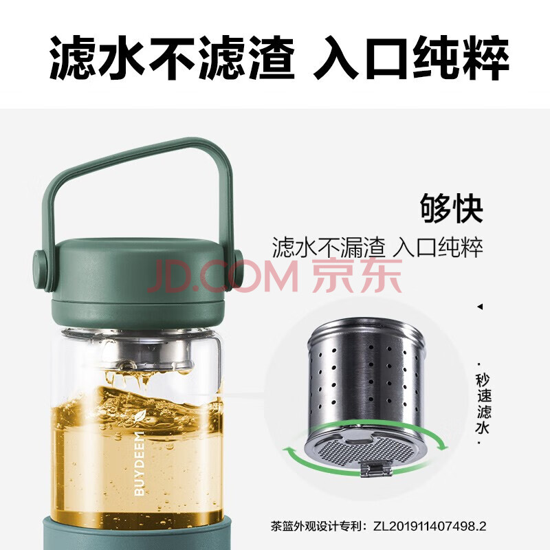商品相册:北鼎(Buydeem)泡茶随手杯 茶水分离玻璃水杯男款女款 泡茶杯子耐用便携办公礼物第1张/共8