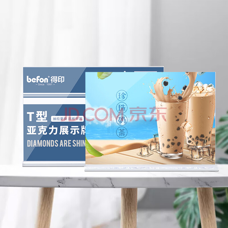商品相册:得印亚克力台签台卡展示牌 A6横款价格牌抽拉式台牌立牌 双面透明前台桌面摆台价目表菜单桌签架7690第