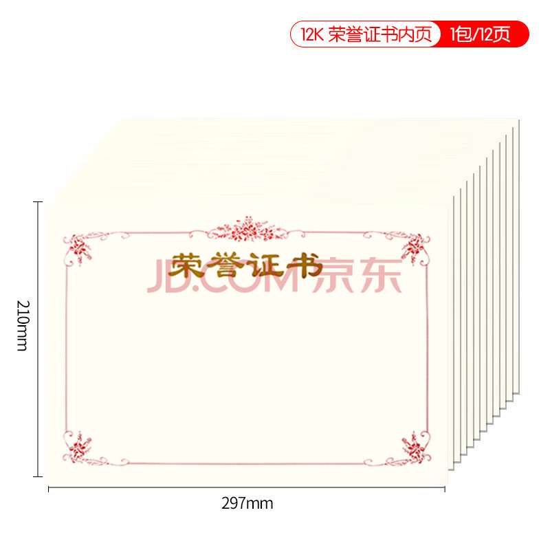 商品相册:得印12K绒面荣誉证书内芯内页 学校企业用奖状内芯 牡丹花款褒奖证书可打印a4纸张内页文具 12张8284第