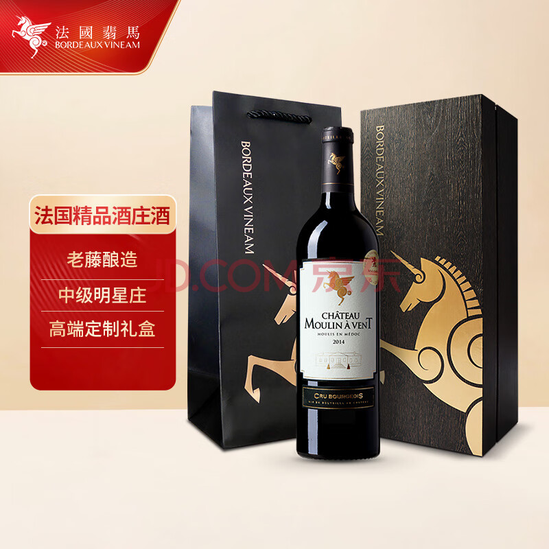 商品相册:翡马(BORDEAUXVINEAM)慕朗酒庄干红葡萄酒 750ml 单支礼盒装 法国进口红酒 第