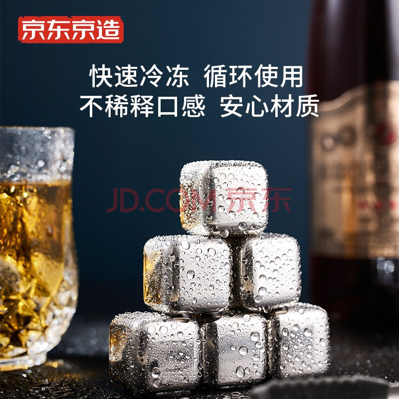 商品相册:京东京造 冰块 304不锈钢冰块金属 制冰神器 八粒+硅胶冰夹+PP盒第