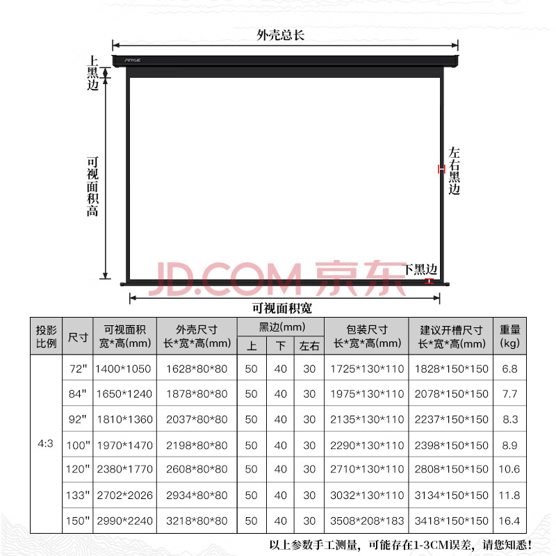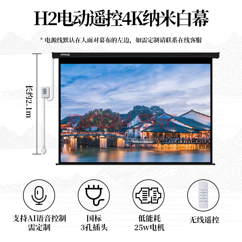 商品相册:品跃(PInYUE)84英寸4:3高清投影幕布电动遥控投影仪幕布家用办公4k纳米白幕投影布第