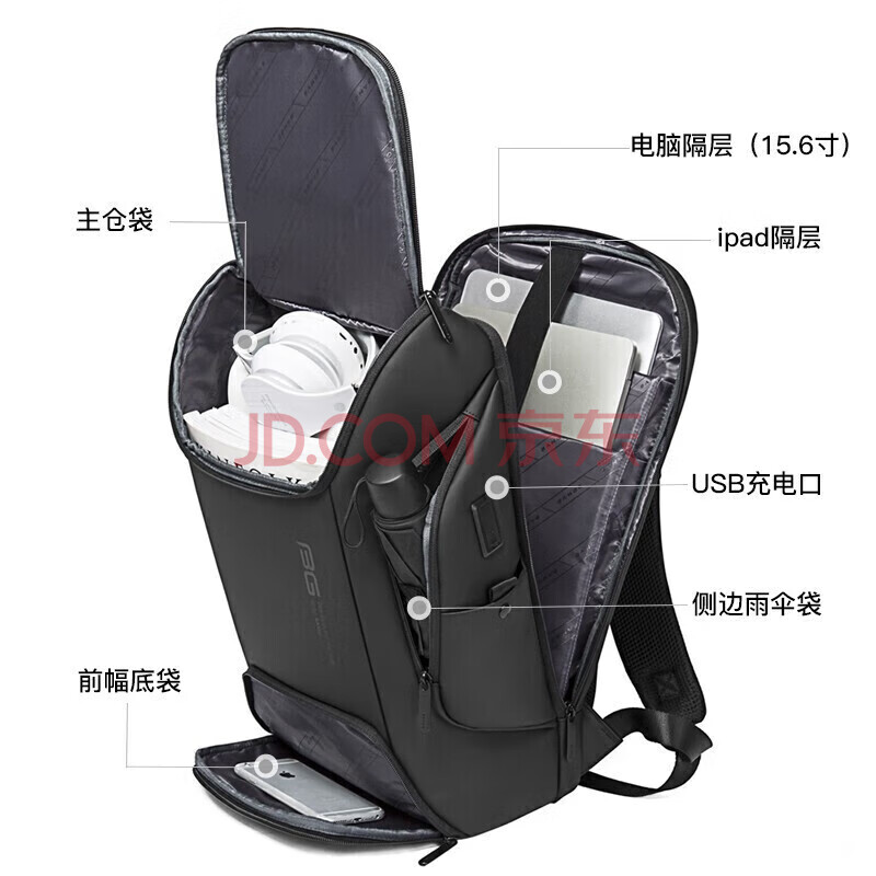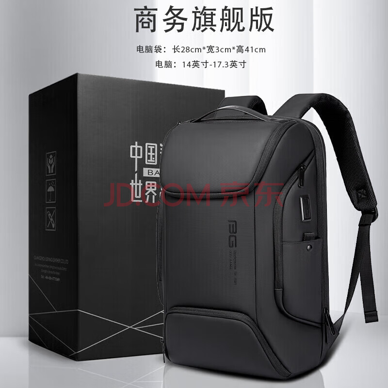 商品相册:班歌商务双肩包男出差大学生书包礼物休闲旅行背包17英寸电脑包7267黑第