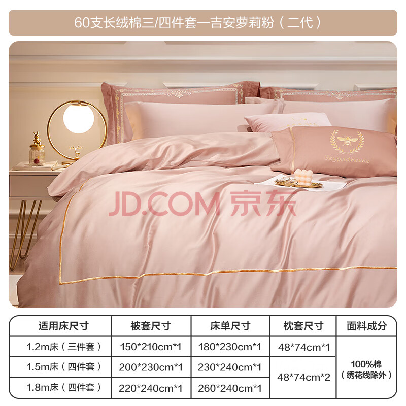 商品相册:博洋家纺60支新疆长绒棉四件套 吉安纯棉床单被套轻奢全棉套件180cm家居馆第