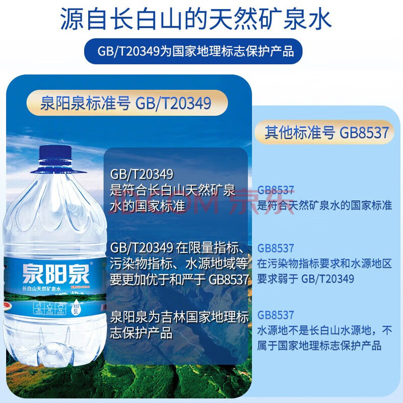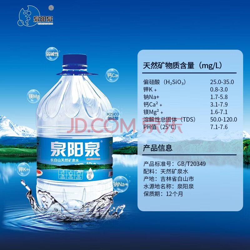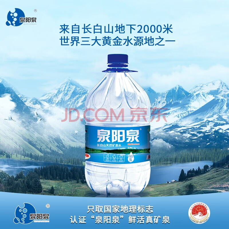 商品相册:泉阳泉(QUANYANGQUAN) 长白山天然矿泉水 大桶装 家庭用水 5L*4桶 整箱塑包装第