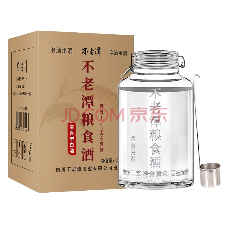 商品相册:不老潭粮食酒 60度浓香型高度玻璃坛泡酒高粱酒散装白酒泡药泡水果 5L第