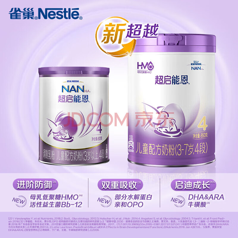 商品相册:雀巢(Nestle)超启能恩4段 乳蛋白适度水解儿童奶粉 全面营养3-7岁适用850g*1罐第
