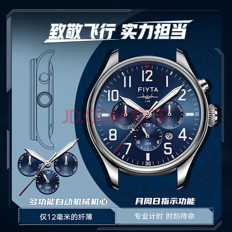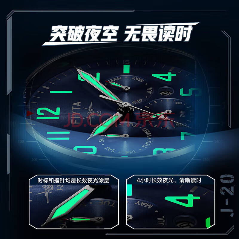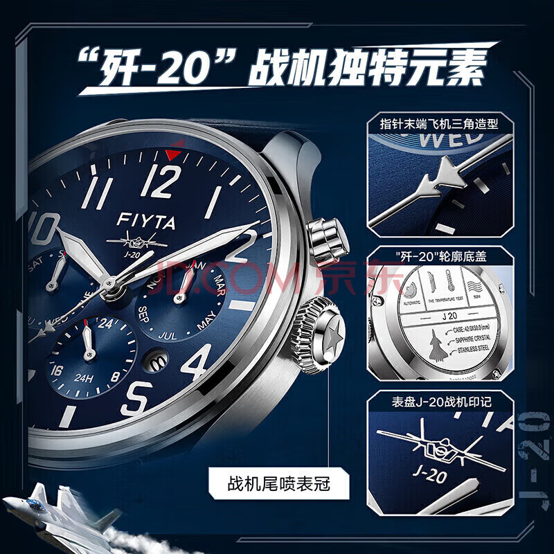 商品相册:飞亚达(FIYTA)马赫系列 歼-20特别纪念多功能男士机械表 礼盒包装节日送礼第1张/共8