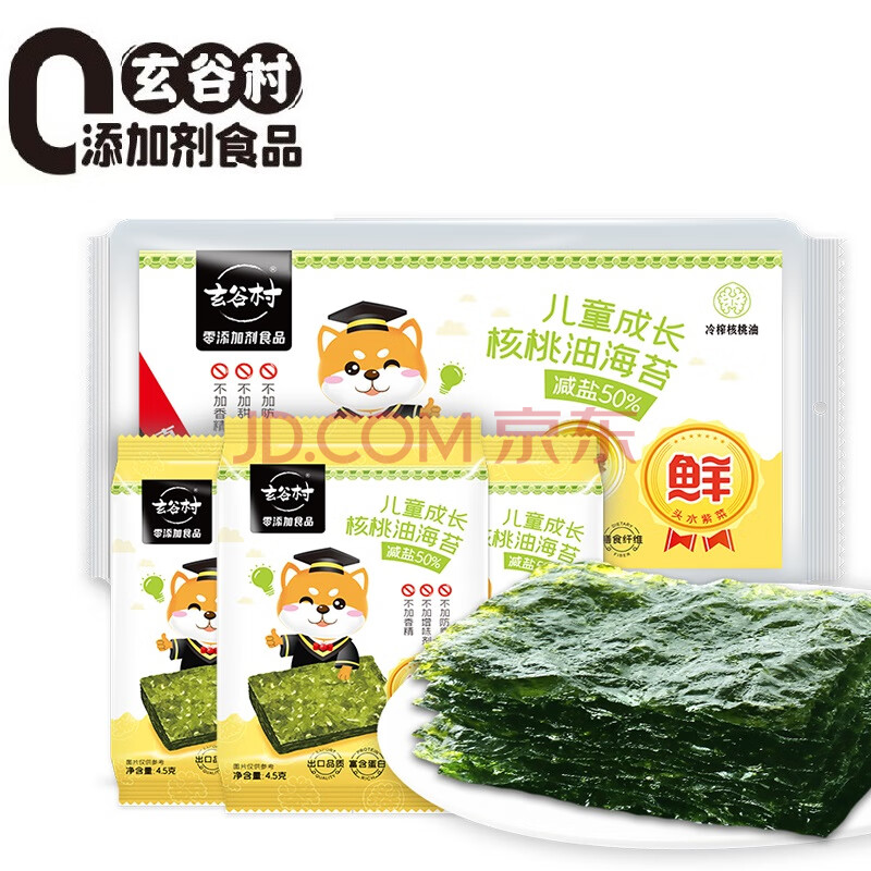 商品相册:玄谷村核桃油海苔片4.5g *3包 零0添加剂紫菜包饭脆片 休闲零食小吃第