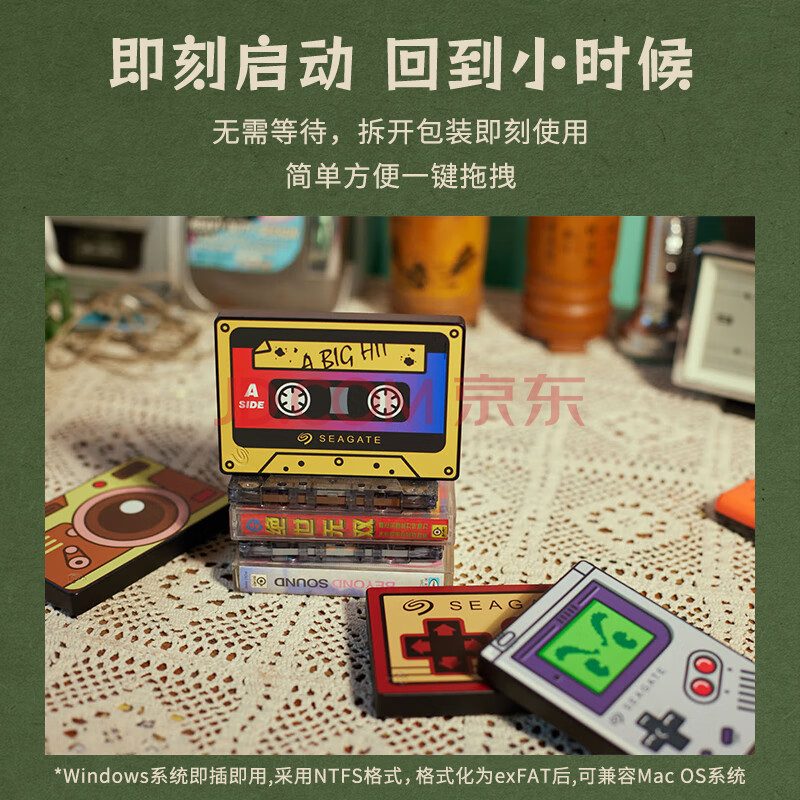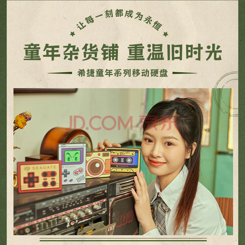 商品相册:希捷(SEAGATE)移动硬盘 2TB USB3.0高速 机械硬盘 兼容Mac 便捷 童年小相机 复古金 数据恢复服务 外接存储第