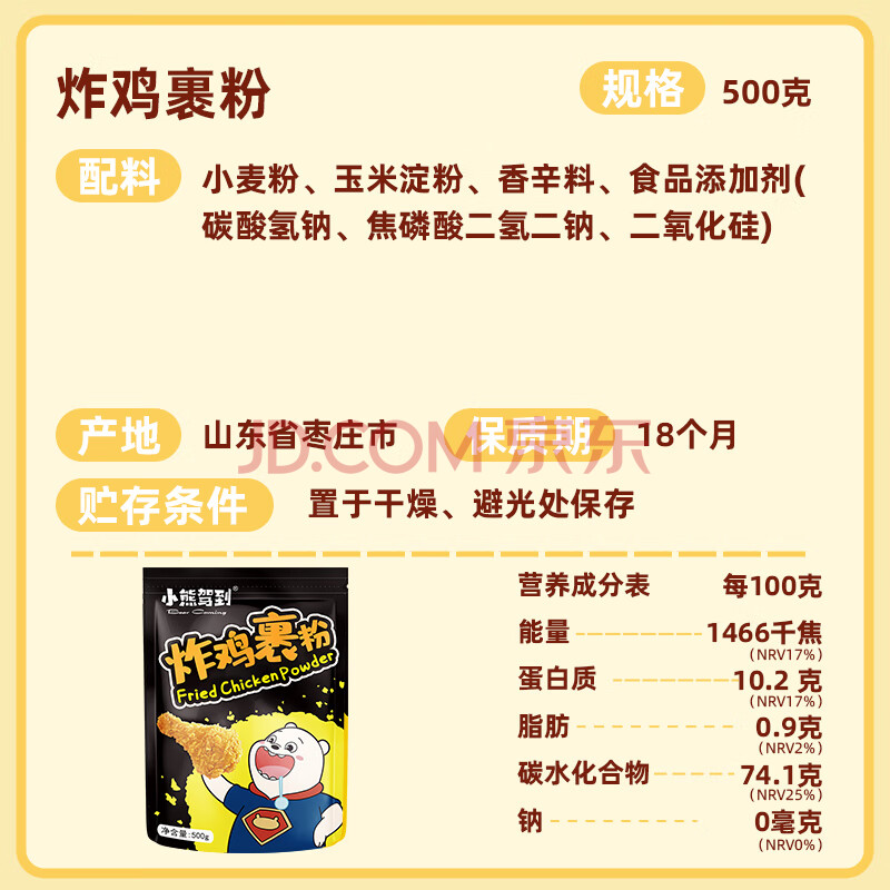 商品相册:小熊驾到 炸鸡裹粉500g*2袋 家用天妇罗炸粉烧烤炸鸡腿翅排香酥脆皮调味料第