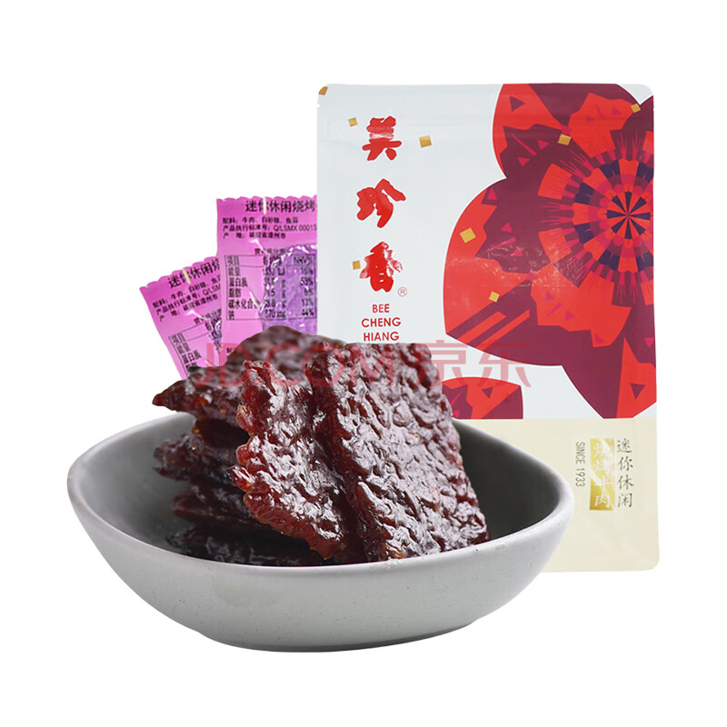 商品相册:美珍香(BEE CHENG HIANG) 休闲迷你烧烤牛肉100g 牛肉干肉脯烧烤肉干类零食小吃独立小包装第