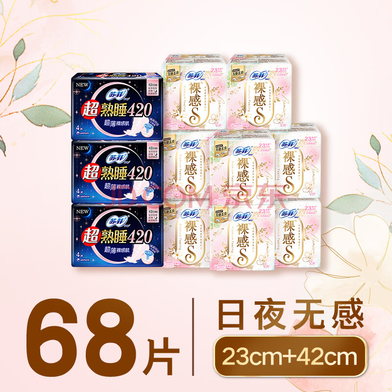 商品相册:苏菲【婴儿级标准】裸感S超熟睡透气姨妈卫生巾日夜用11包68片自营第